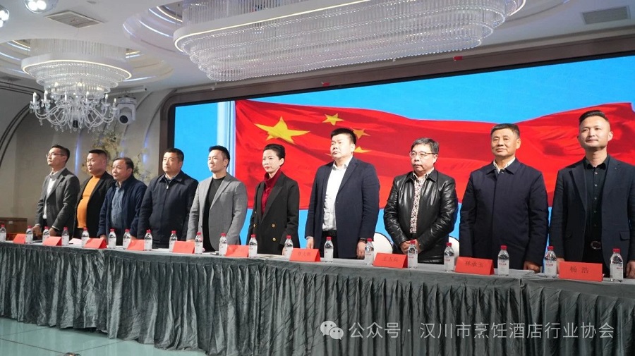 大會在莊嚴的國歌聲中拉開帷幕。漢川市商務局副局長魯大帆、文旅局副局長萬會軍、張碧波、漢川市公共就業和人才服務中心副書記王玉兵、漢川市消費者委員會副會長兼秘書長章志軍等十余位政府部門領導蒞臨指導,以及來自市商務局、市文旅局、市市場監管局、市民政局、市人社局的其他領導一行到場祝賀,孝感市烹飪協會會長魏小靜和秘書長林承玉攜代表團專程參會,與漢川烹協全體會員共聚一堂,見證行業年度盛典。